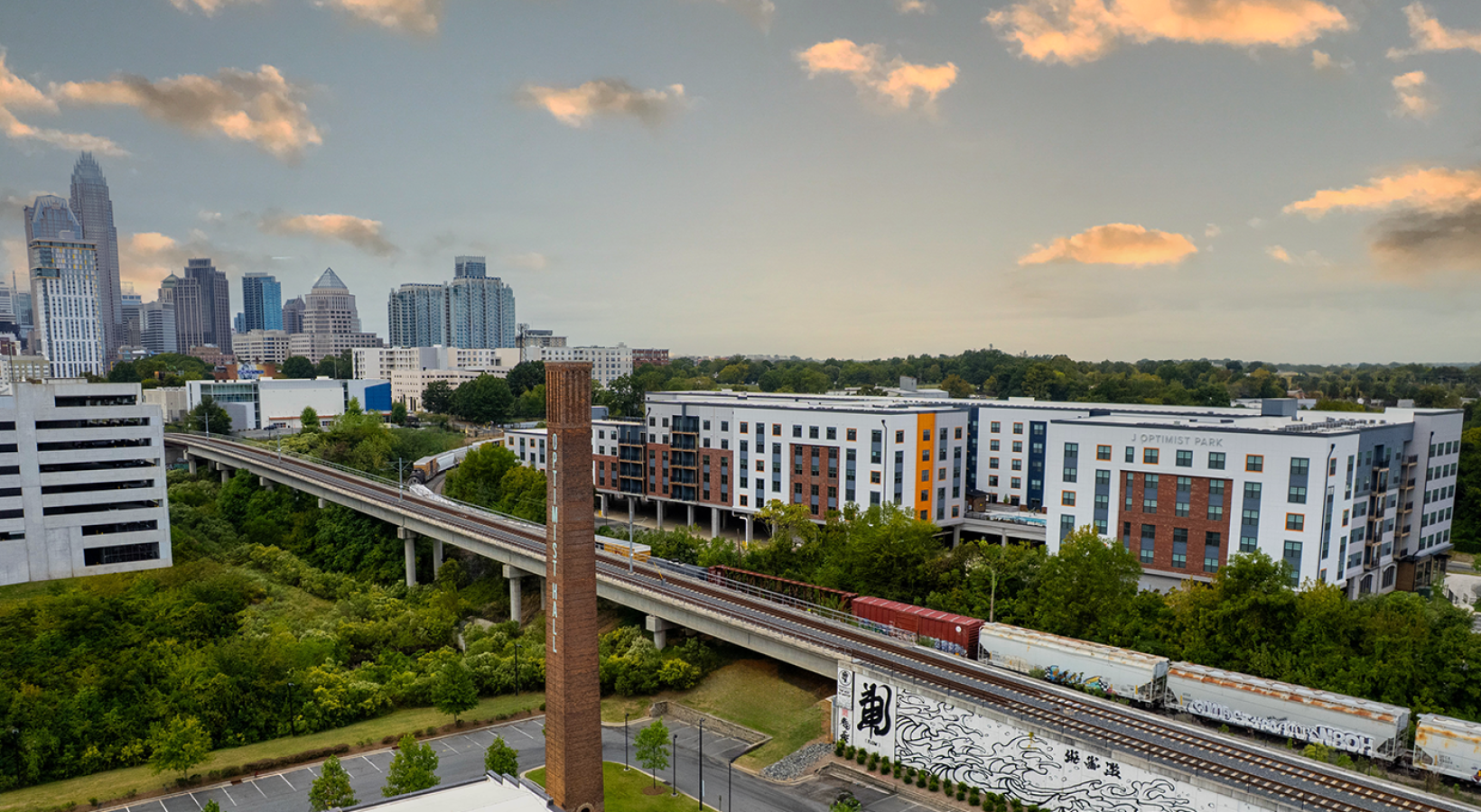 J Optimist Park was designed with reverence to the ingenuity and glamour of the past, but make no mistake: here, we welcome home forward-thinkers, pioneers and adventurers. Our distinctively chic, vintage design stands out from the status quo, a stylish ode to the vintage travel that first made this area so vibrant. What makes it exceptional is the blend of refined industrial style, modern luxury apartments in Charlotte, thoughtfully designed amenities, and inspiring spaces built to delight - all located in a dynamic and growing area rich with history and full of energy.
